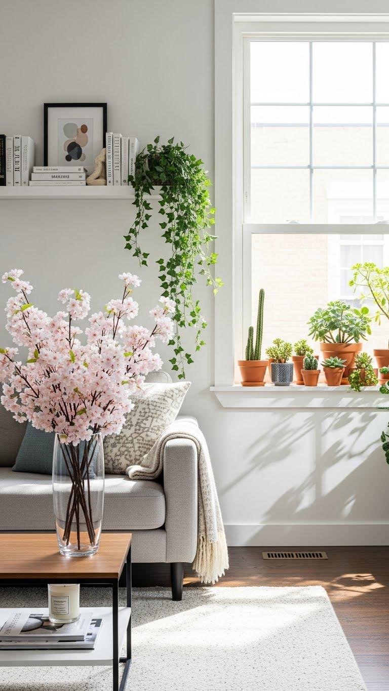 When you tuck slender spring branches into a tall vase, you instantly add organic height and effortless movement to your entryway; the upward lines draw the eye and make the space feel fresh without fuss.