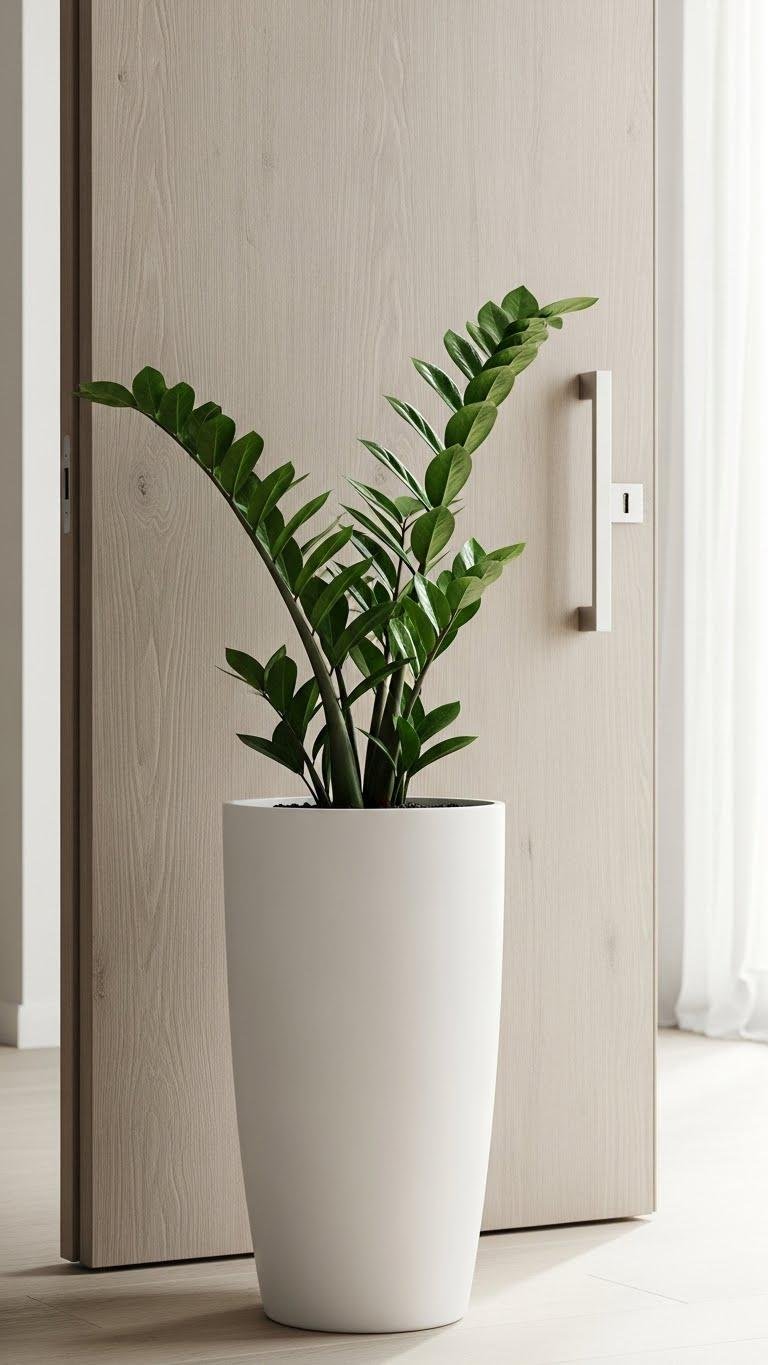 Choose a sleek white planter and pair it with a ZZ plant to create modern simplicity that’s both striking and low-maintenance.