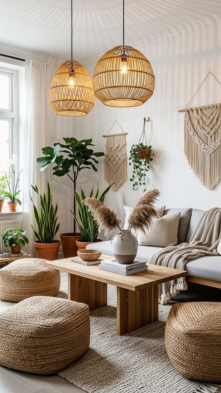 With rattan and jute layered into your living room, you’ll bring a quiet, natural warmth that feels both modern and timeless.