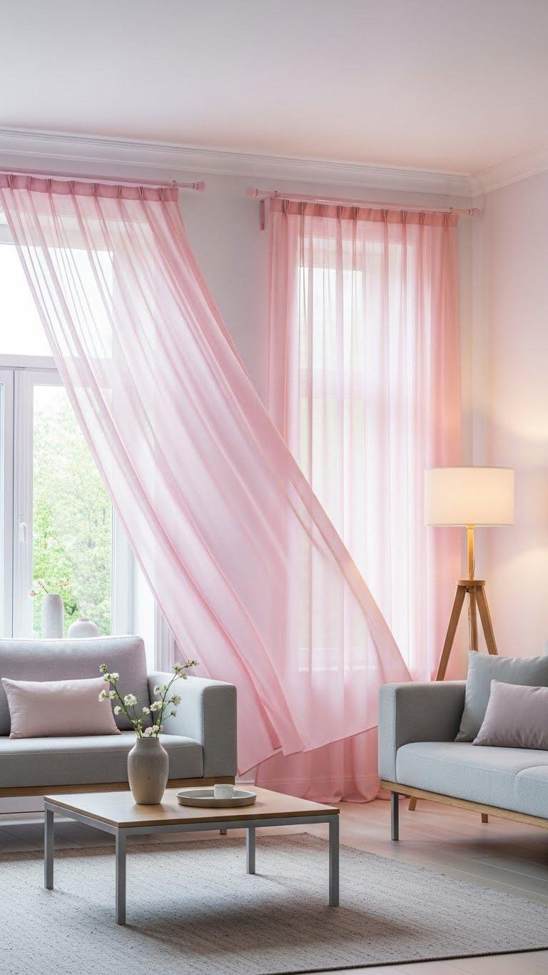 Swap Heavy Drapes for Sheer Pastel Curtains