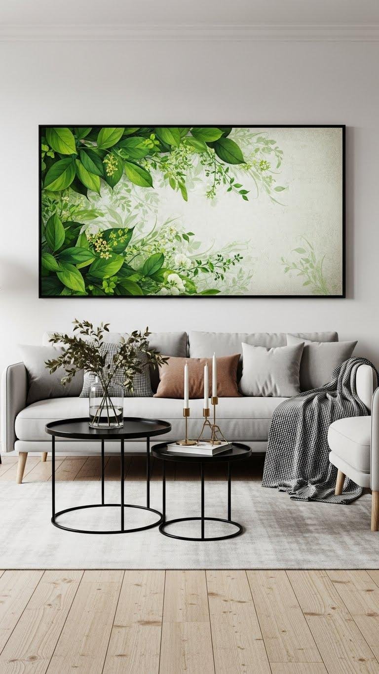 When you hang oversized botanical art above your sofa, it instantly anchors the room and gives your spring palette a confident, living centerpiece. Choose large scale pieces with a botanical focus on textured canvas to add depth and movement.