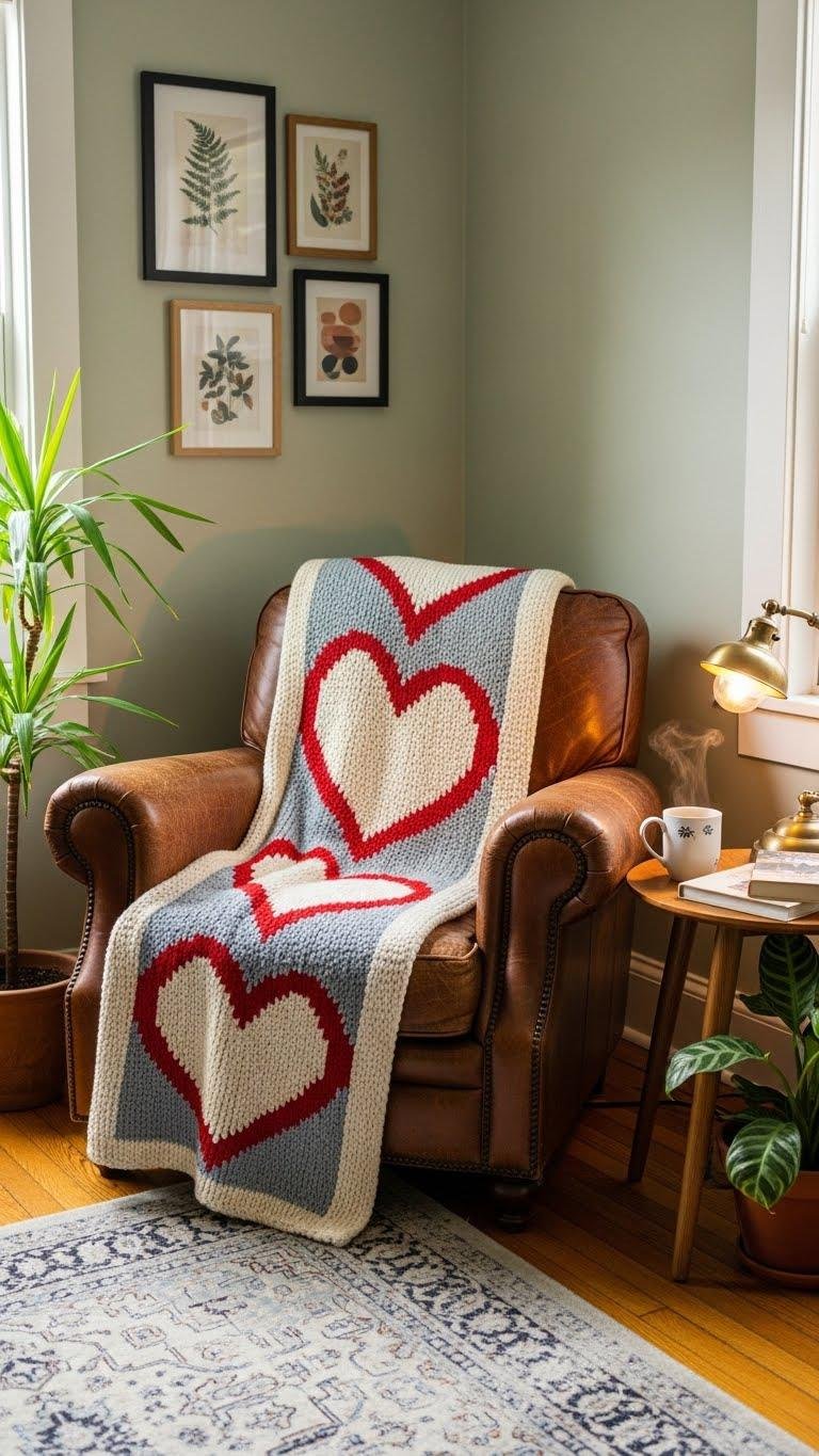 Often you’ll spot a heart-themed throw casually draped over an armchair, instantly turning a simple seat into a focal point that reads both cozy and curated.