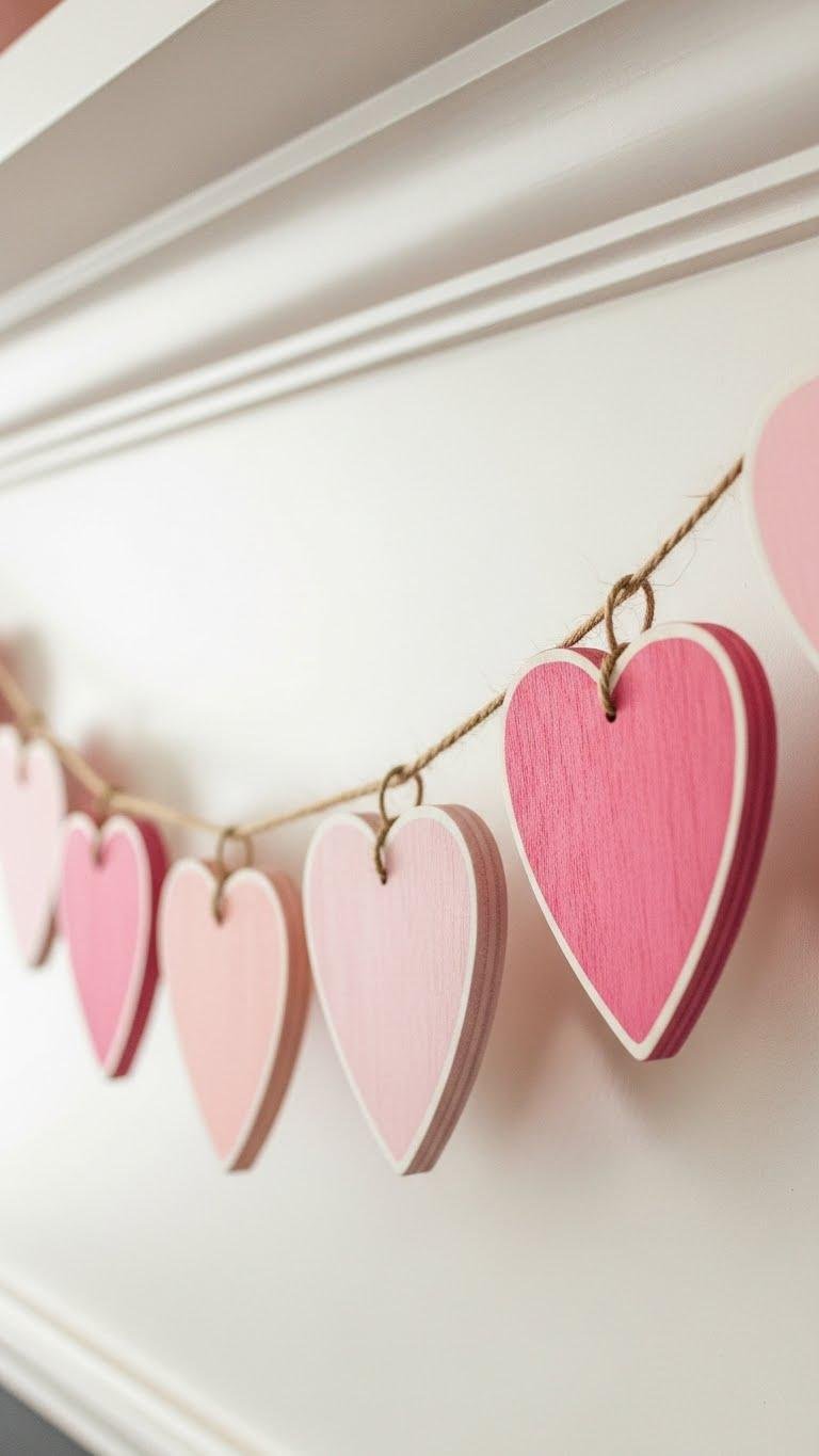 Brighten a mantel or doorway with a DIY garland of small wood hearts painted in varying shades of pink, and you’ll get an easy, modern Valentine accent that feels handcrafted, not cutesy.