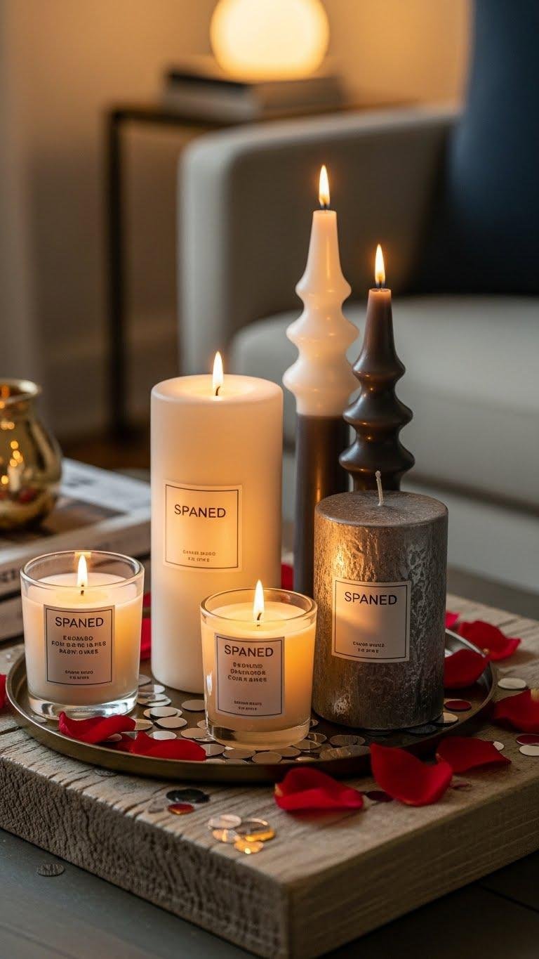 Group a trio of candles in varying heights and finishes to set a cozy, styled focal point on your coffee table. Balance scented votives with sleek tiered tapers, add a low tray or reclaimed wood slab, and scatter a few rose petals or metallic confetti for contrast. You’ll create an inviting, liberated vibe that feels curated without fuss—simple, modern, intentional.
