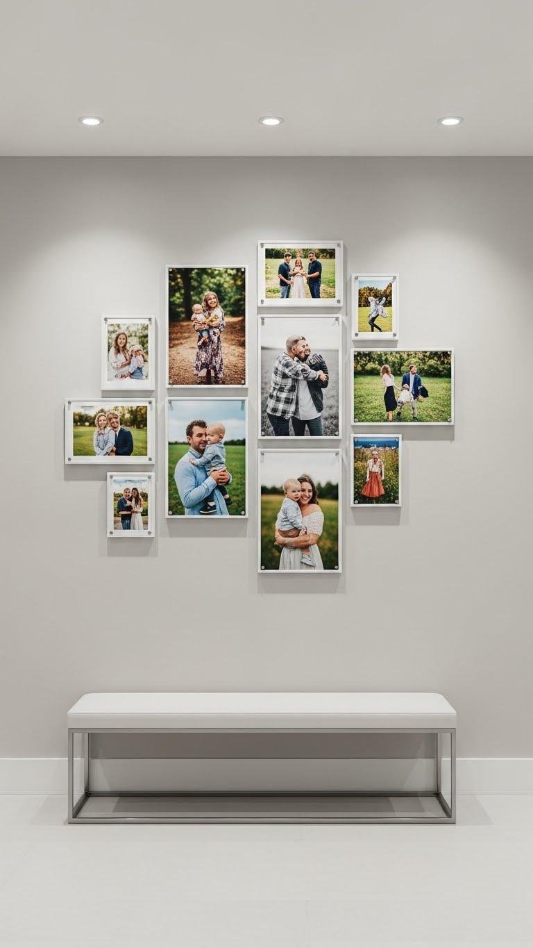 Bring together your favorite moments with a memory wall of acrylic photo prints that feels modern and polished. You’ll choose crisp acrylic mounting for depth and vivid color, then arrange images with intentional photo spacing to create rhythm.
