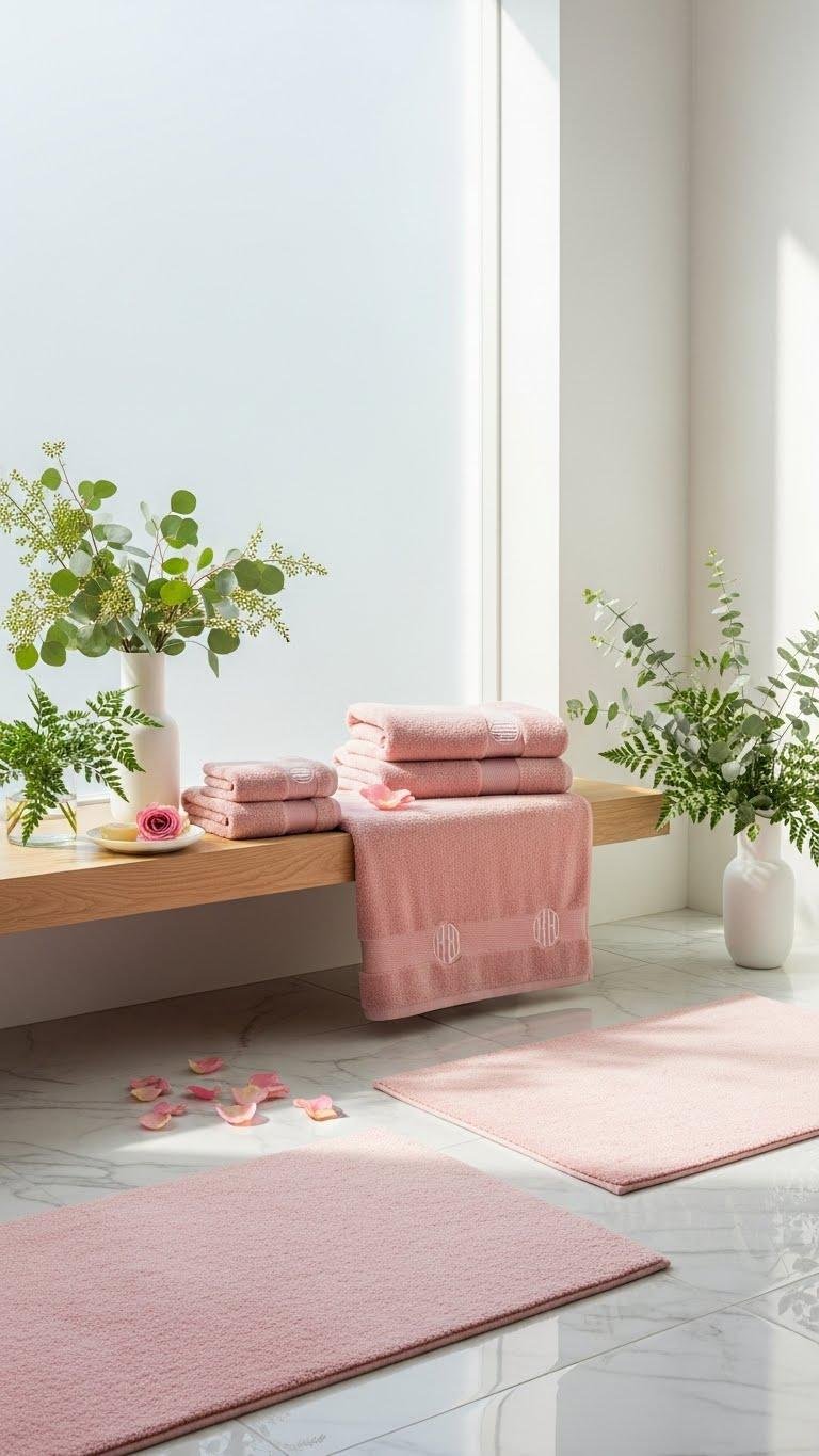Choose Plush Rose-Hued Bathmats and Soft Towels