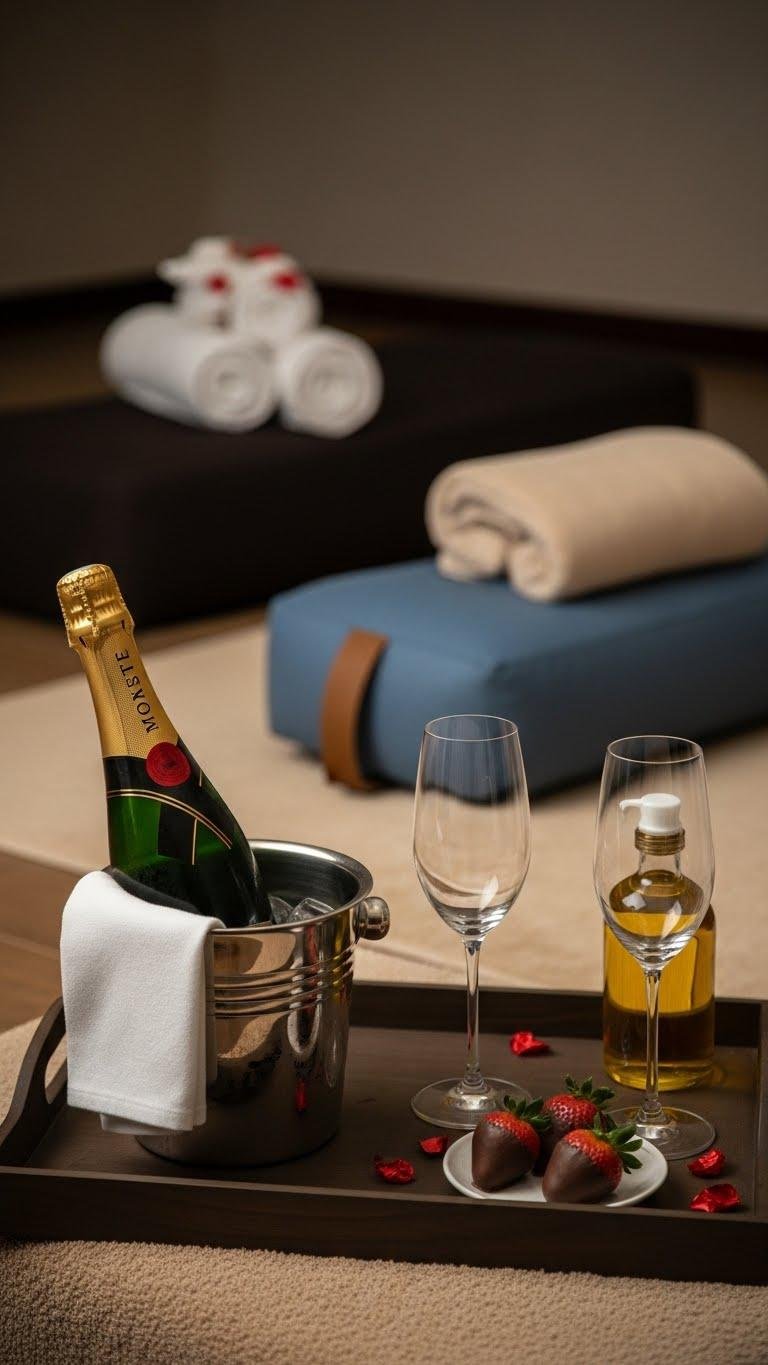 Offer Champagne or Wine and a Couple’s Massage Setup