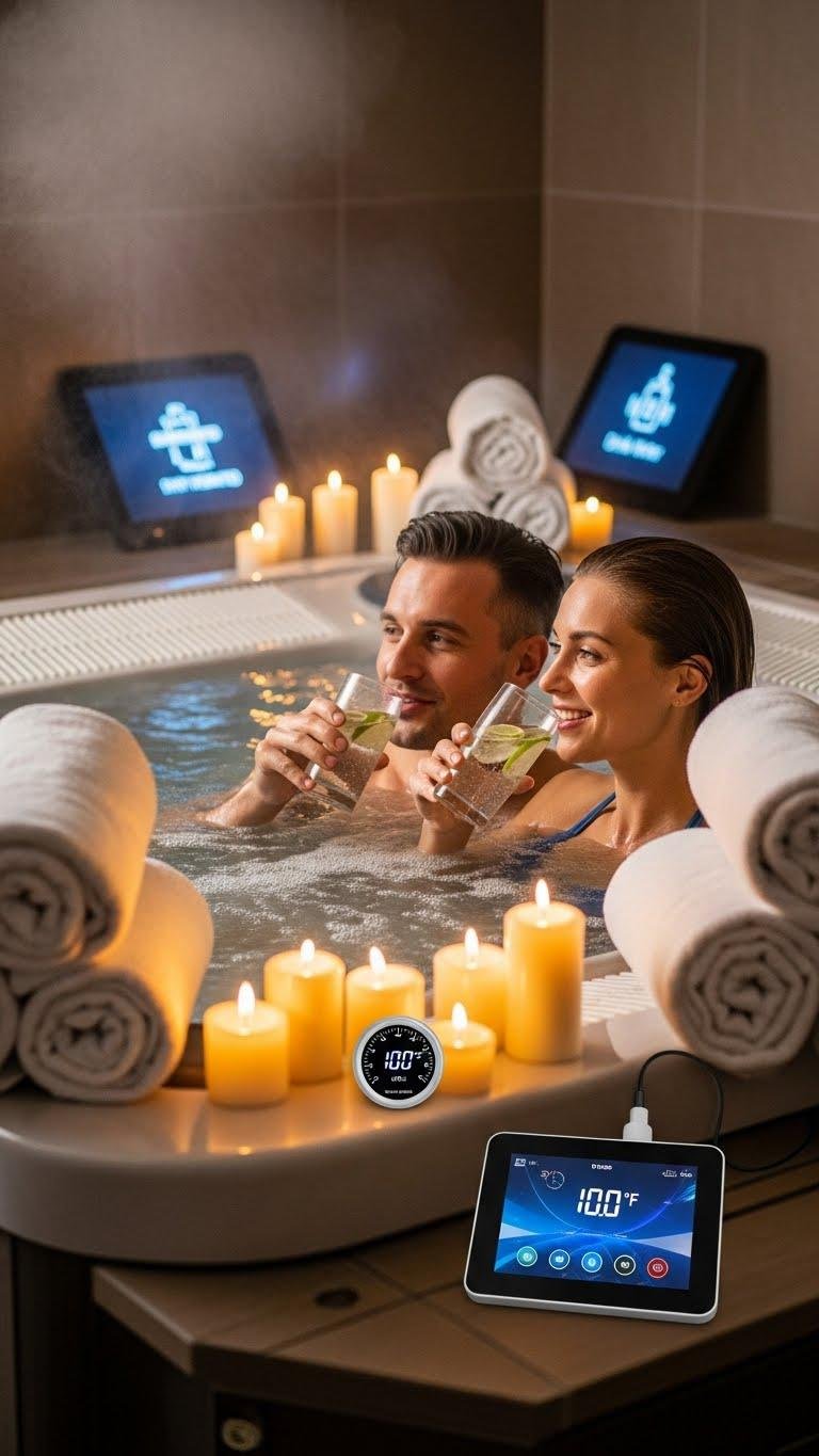 You’ll monitor temperature control with a digital thermometer or smart controller, adjusting jets and covers to retain heat. Follow safety guidelines: limit soak time, hydrate, and check meds. This keeps your Valentine’s soak freeing, warm, and responsibly indulgent.