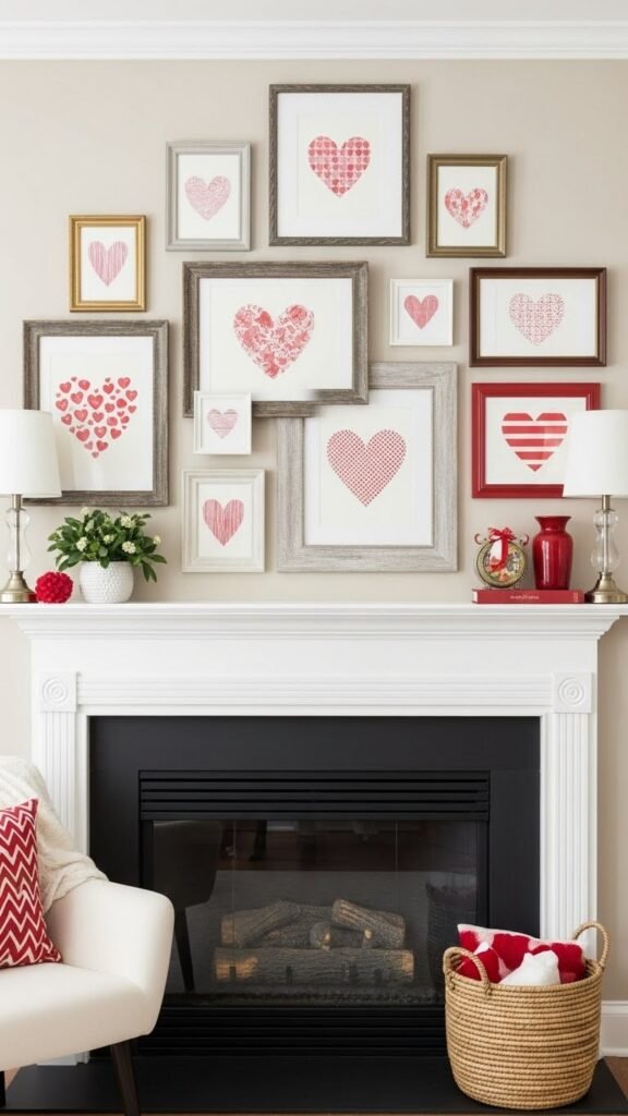 For a quick, high-impact update, hang a printable heart gallery above the mantel — you’ll get big Valentine vibes without buying new art. You’ll download DIY templates, mix sizes, and swap prints fast.