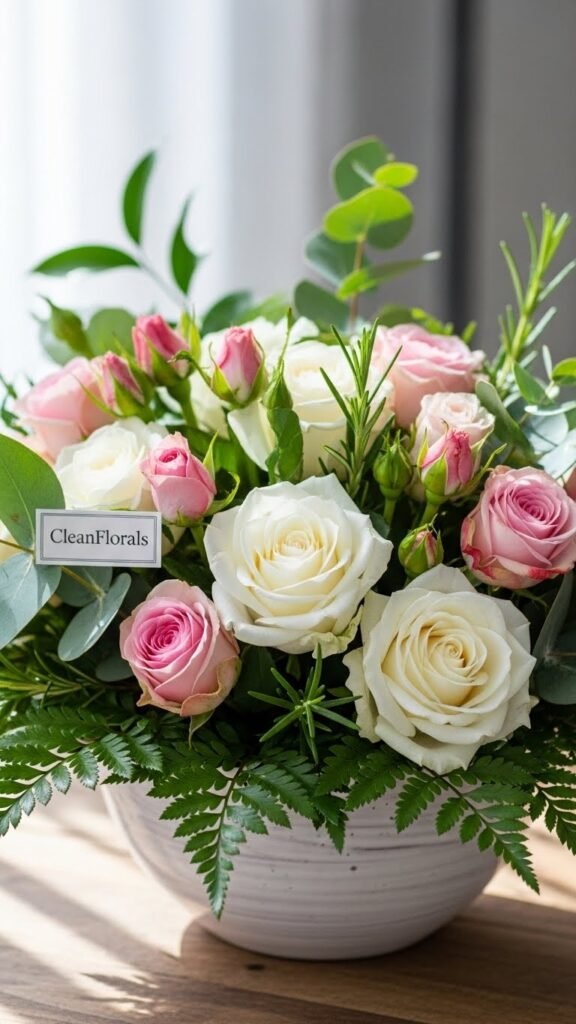 CleanFlorals Greenery and Rose-filled Bowl Display