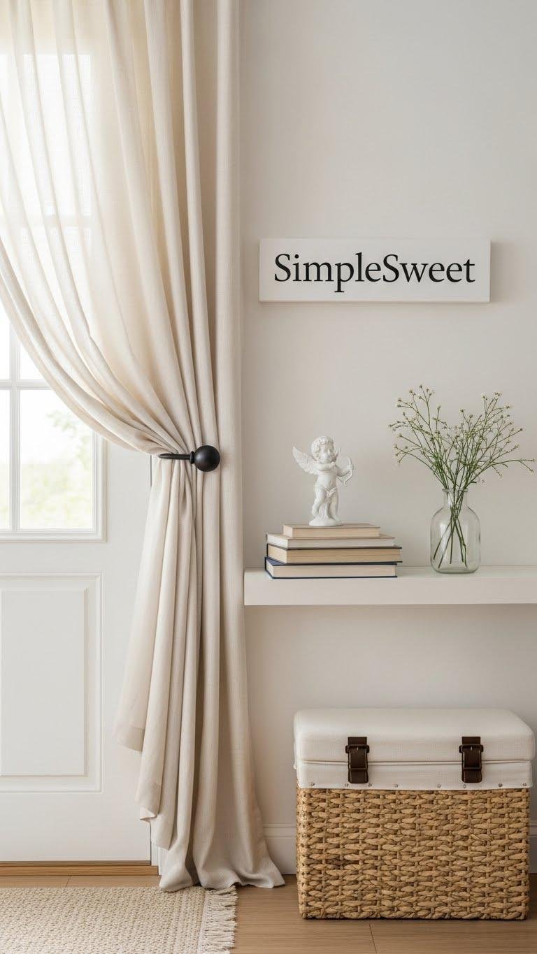 After your entryway curtain sets a romantic tone, let a SimpleSweet shelf vignette whisper charm without overwhelming the space.
