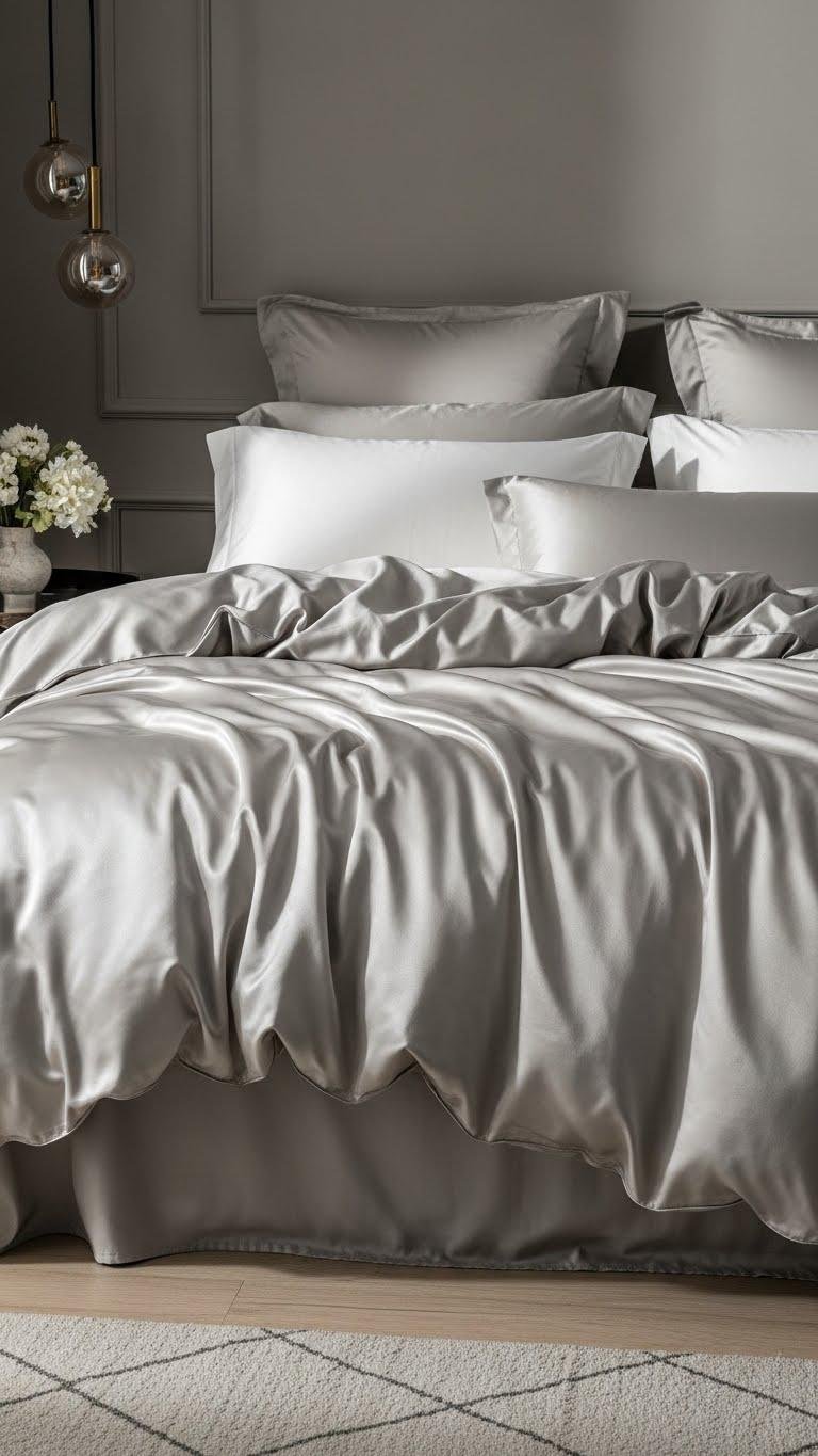 Often a simple swap—trading heavy comforters for satin linens and neutral sheets—will instantly lift your bedroom from cozy to quietly glamorous.