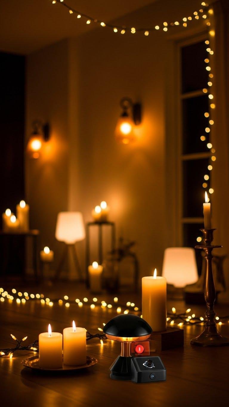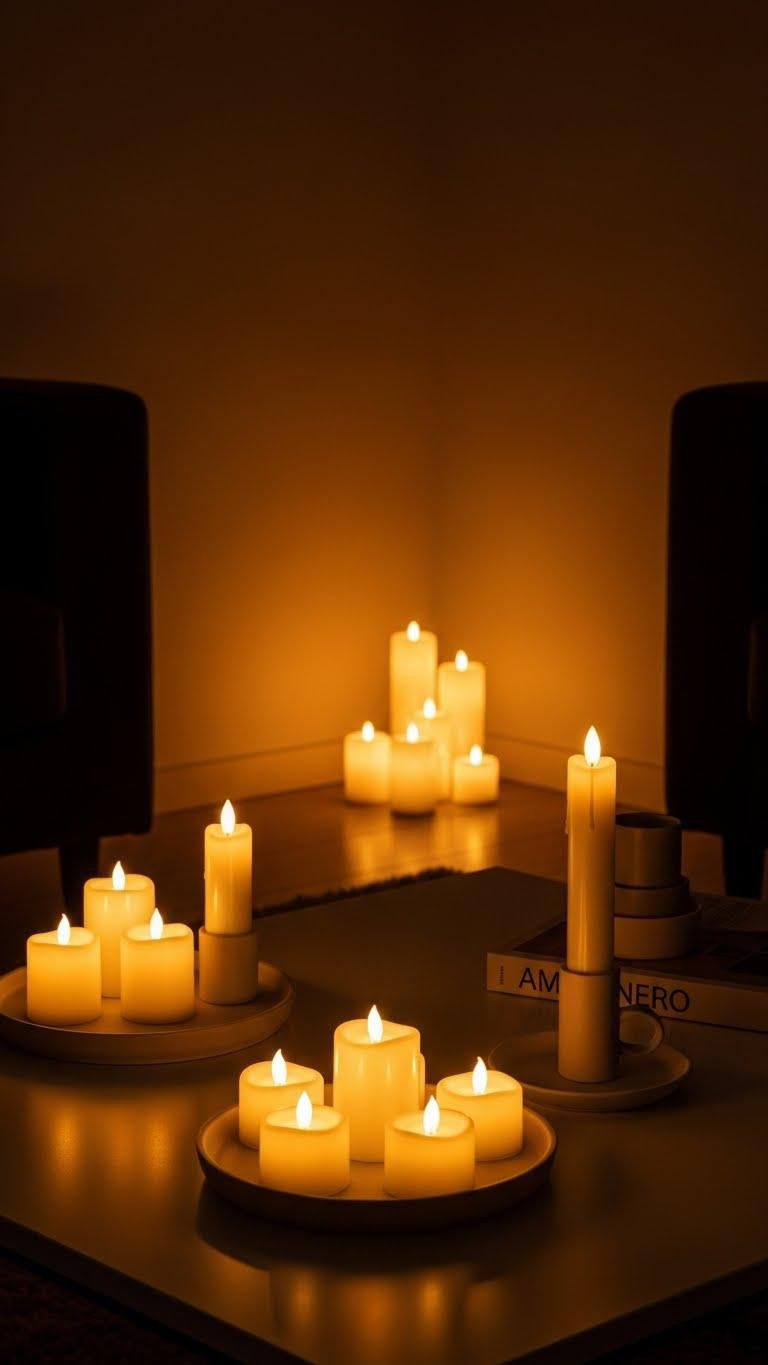 You’ll place battery operated tealights in clusters, use ambient floorwashing LEDs to tint corners, and balance warmth with shadow.
