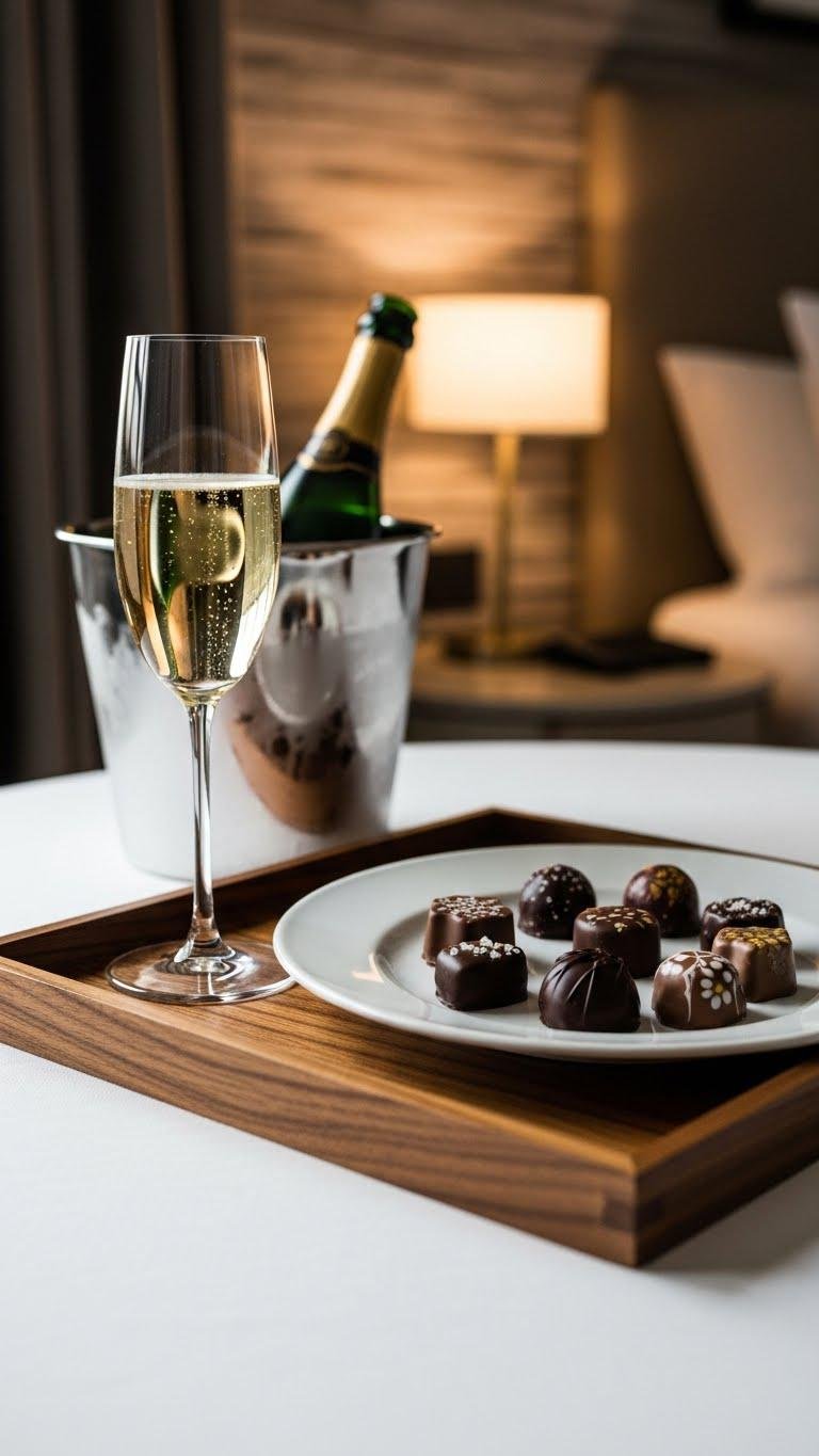When you pair a chilled flute of champagne with a small plate of artisanal chocolates on your nightstand, you create an instant pocket of luxury that feels both intentional and effortless.