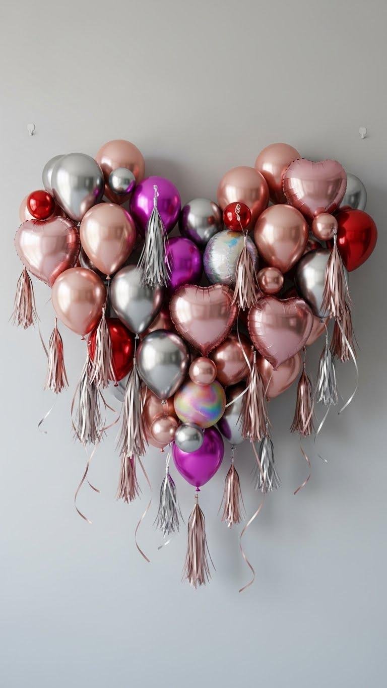 Kick off your Valentine’s decor with a heart-shaped balloon wall that makes an instant statement; you’ll get high-impact romance without breaking the bank. You’ll choose mixed sizes, metallics and foil accents for texture, then add floating tassels to suggest movement. Arrange asymmetrically for modern freedom, anchor with removable hooks, and keep proportions tailored to your space for a polished, trend-forward focal point.