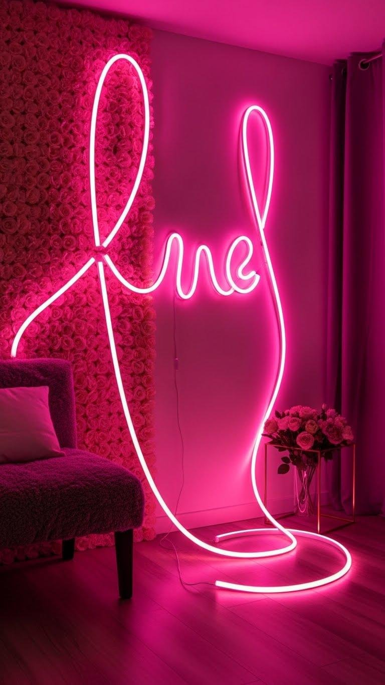 If you love the luxe romance of a silk rose wall but want a glow that reads modern and cozy, a warm pink LED neon alternative gives you that ambient pop without the fragility of glass tubes.
