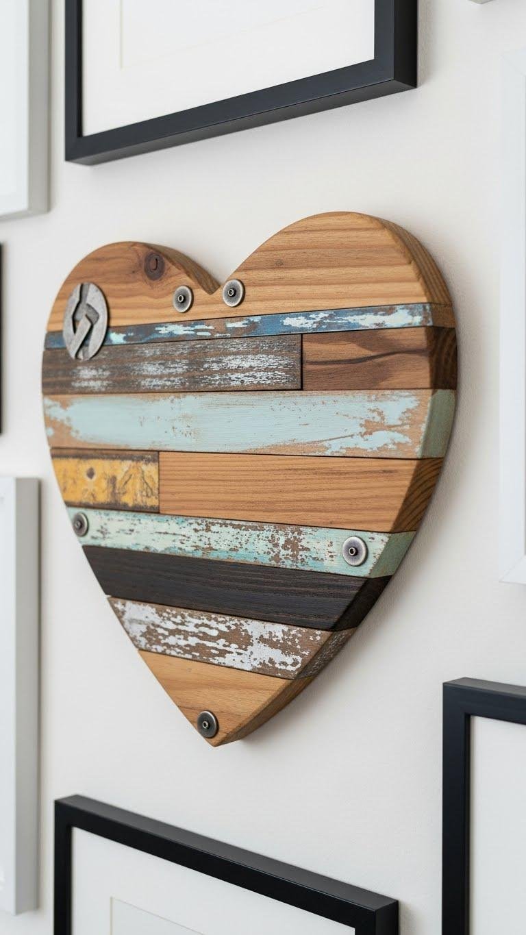 With layered textures and warm wood grain, the mixed-media wooden heart plaque brings handcrafted charm to your Valentine’s wall while staying modern and refined.