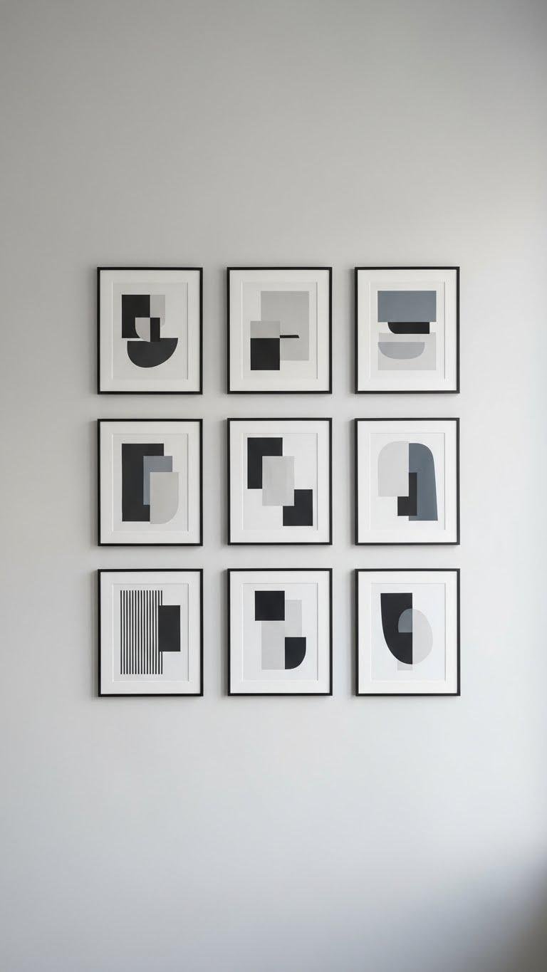 When you want a calm, curated focal point, minimalist grid art compositions give your wall structure without shouting—clean lines, measured spacing, and a restrained palette turn multiple small pieces into a single, sophisticated statement.