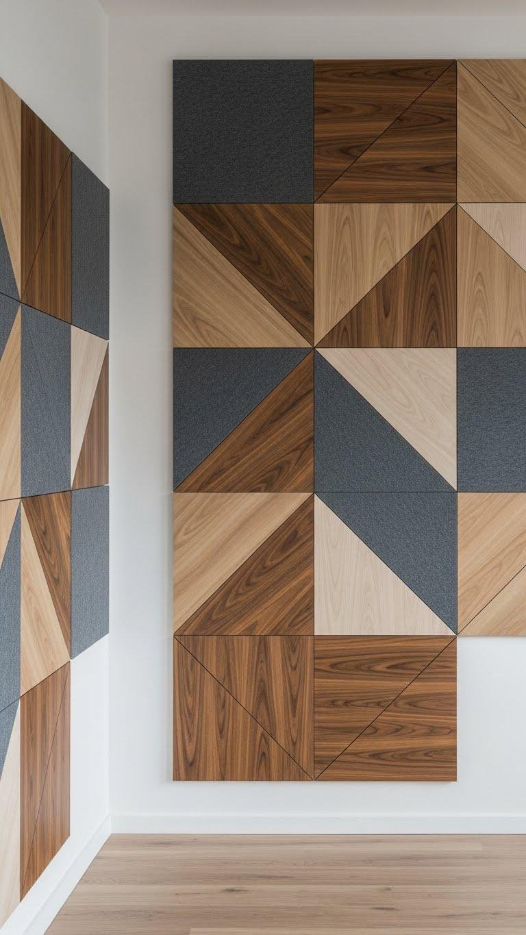 Introduce geometric wood wall panels to give your space crisp structure and tactile warmth—think clean, interlocking shapes that read modern but feel cozy in natural grain. You’ll embrace reclaimed geometry for eco-forward style, arranging modular acoustic panels to tame sound and sculpt light. Mix tones, stagger depths, and let bold patterns unleash a liberated, minimalist vibe that feels both intentional and effortless.