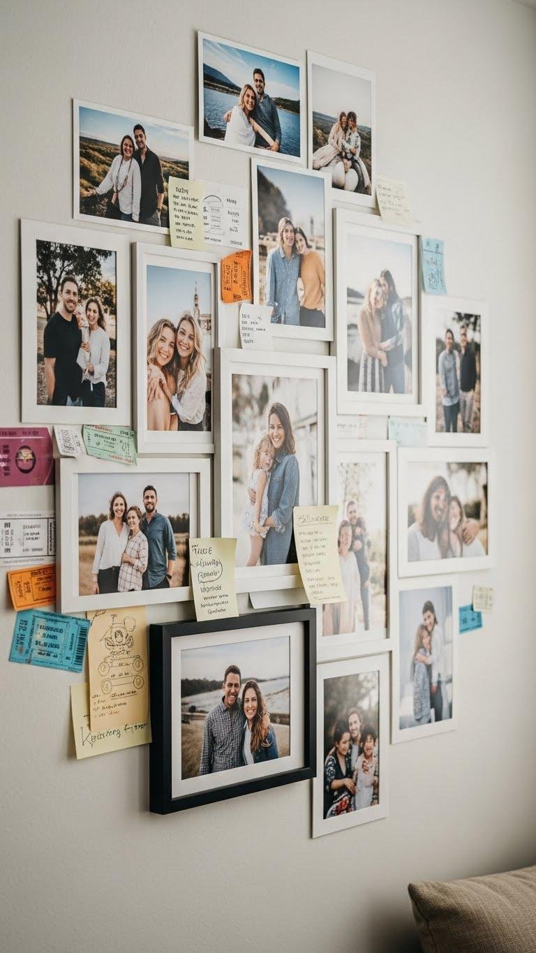 Memory-wall collages turn snapshots into a personal museum—arrange photos by color, moment, or story to create a visual narrative that’s both curated and intimate.